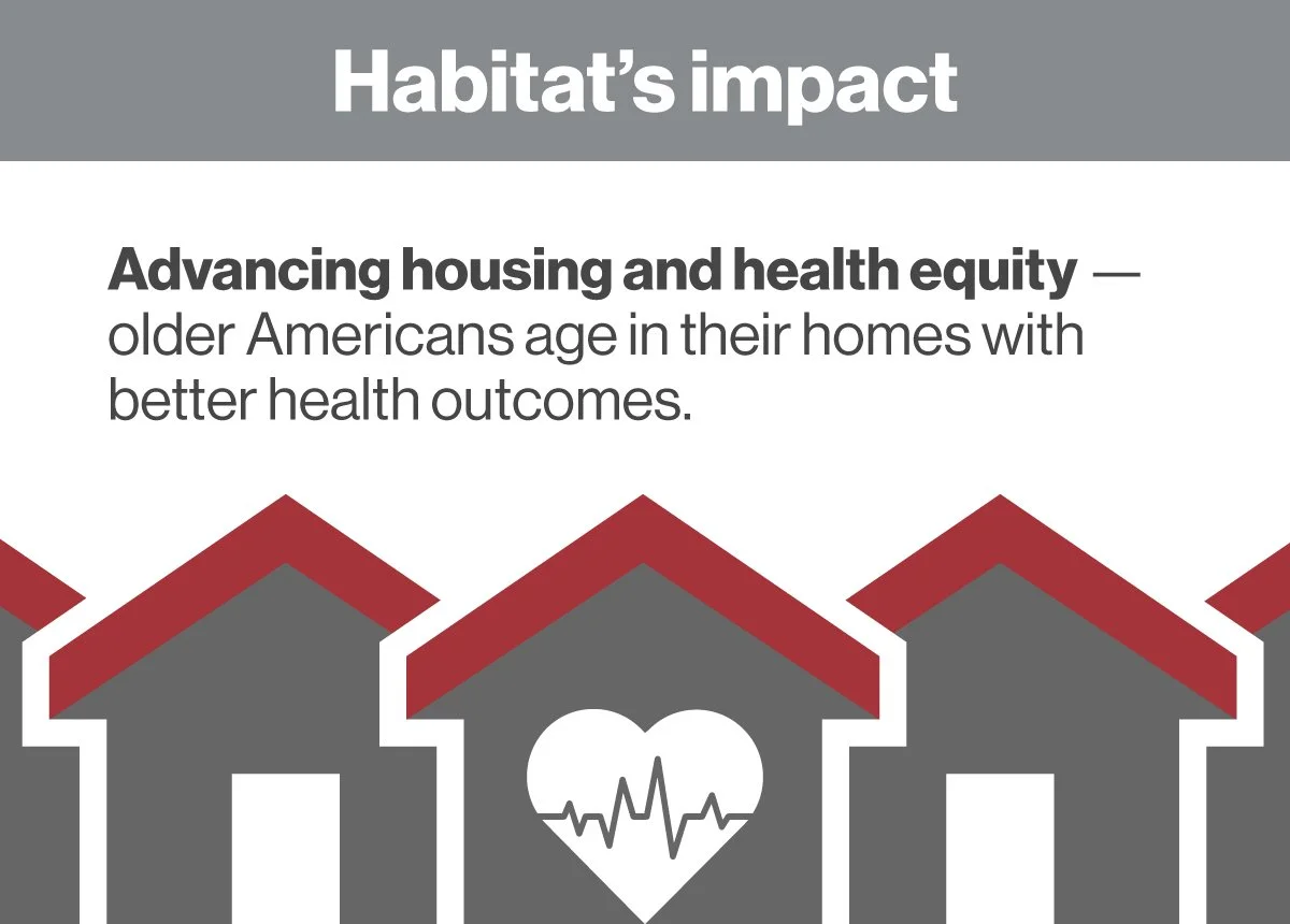 Safe and accessible housing is a key social determinant of health. As leaders in housing, with our vast network across the United States and evidence-based approach, Habitat’s Aging in Place program advances both housing and health equity for older Americans.
