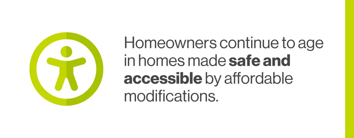 We know that aging in place extends longevity and quality of life, and safe and stable housing and community networks are core to these outcomes. Surveys of homeowners that partner with us show they’re mentally and physically healthier, feel safer at home, and engage with their family and friends more.